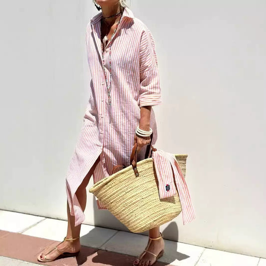 Striped flowy shirt dress