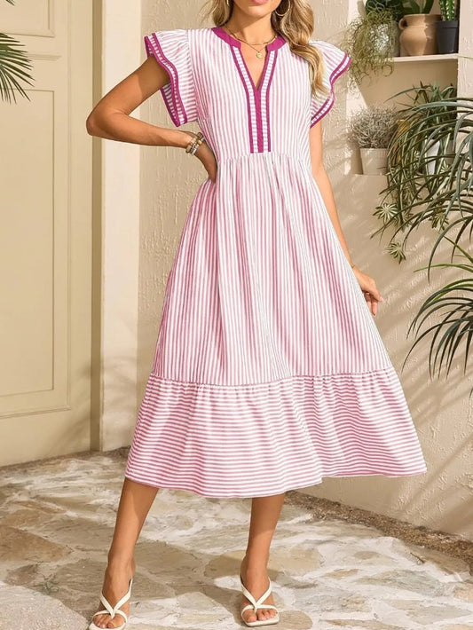 Striped Midi Dress with Flutter Sleeves